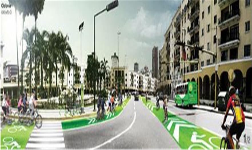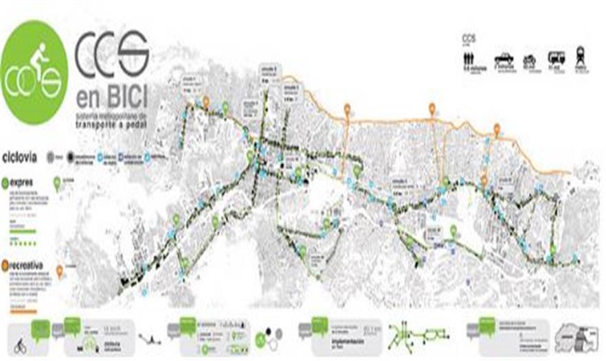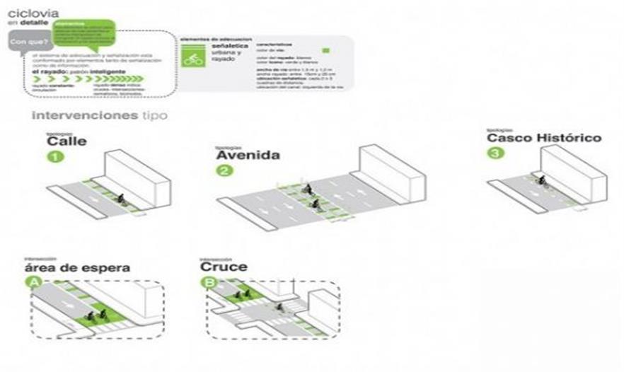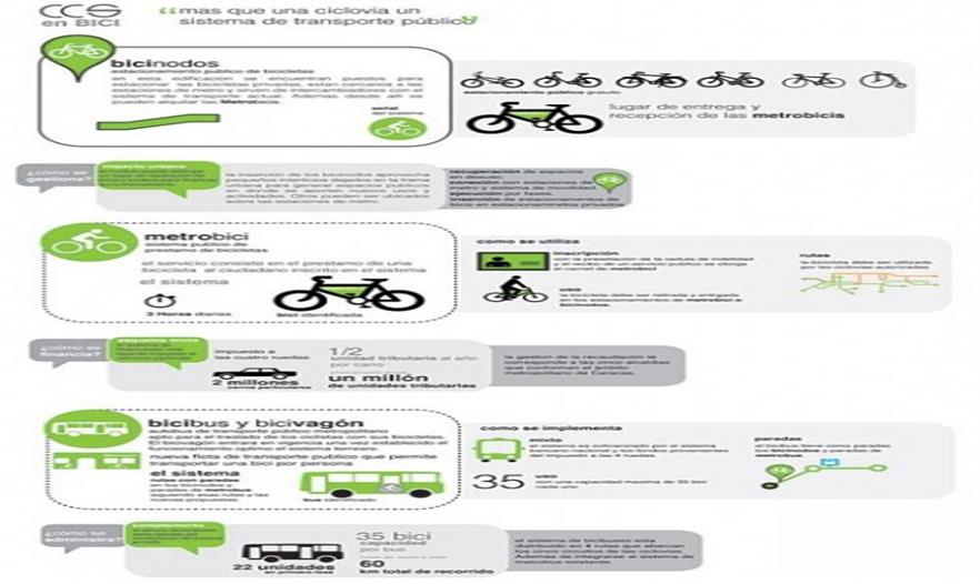 獲勝方案創(chuàng)意獨特,將加拉加斯市內(nèi)的交通道路定位為主要供自行車使用的道路系統(tǒng)。方案提出的道路系統(tǒng)共分為兩種類型,一種是永久性的高速公路,主要針對日常交通,有六條環(huán)路;另一種主要是為游客和節(jié)假日旅游的人而建的,只有兩條環(huán)路,穿過市內(nèi)重要的公共地區(qū)。設(shè)計師計劃在市內(nèi)干道的左邊建設(shè)特有的自行車專線。按照該方案,所有自行車道都是綠色的,自行車道上有自行車專用的相關(guān)標志,包括斑馬線等,指示牌,特制照明燈,自行車停放區(qū)等設(shè)施,十字路口還有專供騎自行車的市民等候紅綠燈的區(qū)域。