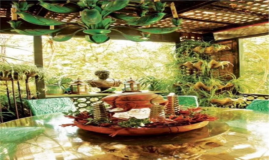 這個樹上小屋造型具有Tony Duquette的經(jīng)典風格,室內(nèi)的朝圣者座椅用孔雀石做底,里面還有Tony Duquette專門為Elizabeth Arden設計的金屬枝形吊燈。