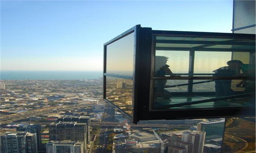 最特別的是,尤利卡88觀景臺(tái)為勇于挑戰(zhàn)自己膽量的游客特別設(shè)計(jì)了一個(gè)被稱(chēng)作“邊緣地帶”的透明觀景包廂,可同時(shí)容納12人,采用鋼體結(jié)構(gòu)支撐??沙惺?0噸重量,抵擋70公里/小時(shí)的強(qiáng)勁風(fēng)力。 當(dāng)你踏上這個(gè)晶瑩剔透的玻璃觀景包廂之后,“邊緣地帶”會(huì)開(kāi)始緩緩向前伸出至88層樓體之外。玻璃包廂內(nèi)的光線也漸漸由暗變明,突然,游客的耳邊會(huì)響起一陣陣金屬摩擦和玻璃破碎的特制音效,仿佛在毫無(wú)防備之余,“邊緣地帶”就要搖搖欲墜、分崩離析,讓你著實(shí)體味了一把“命懸半空”的驚悚快感。