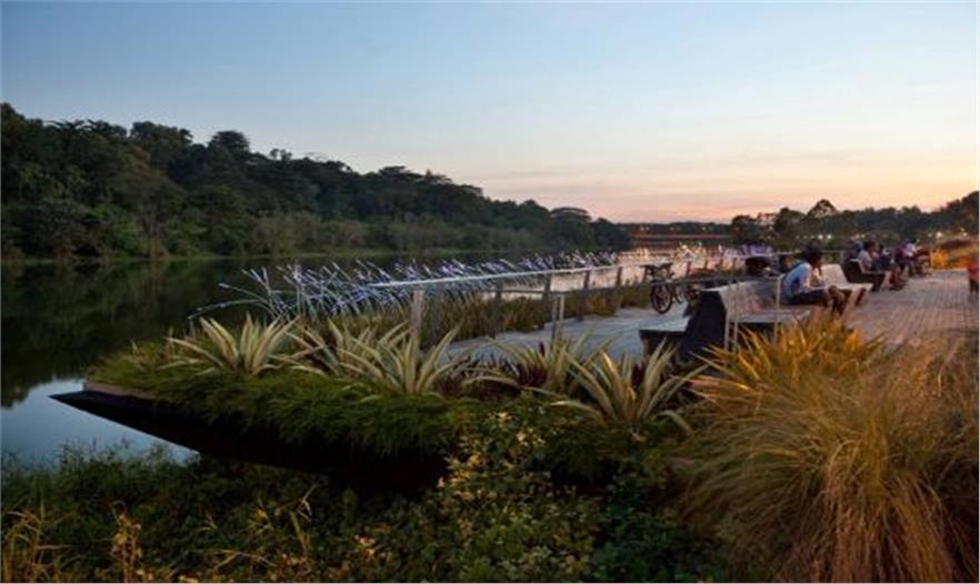 另外,設(shè)計團隊也承繼過去榜鵝鄉(xiāng)間積水蓮花婀娜生長的風(fēng)貌,特別在銜接步道的榜鵝尾公園(Punggol Point Park)里設(shè)置兩個巨型蓮花池。這個借助蓮花的今昔對比正好“巧妙地將過去與現(xiàn)在連接起來”。