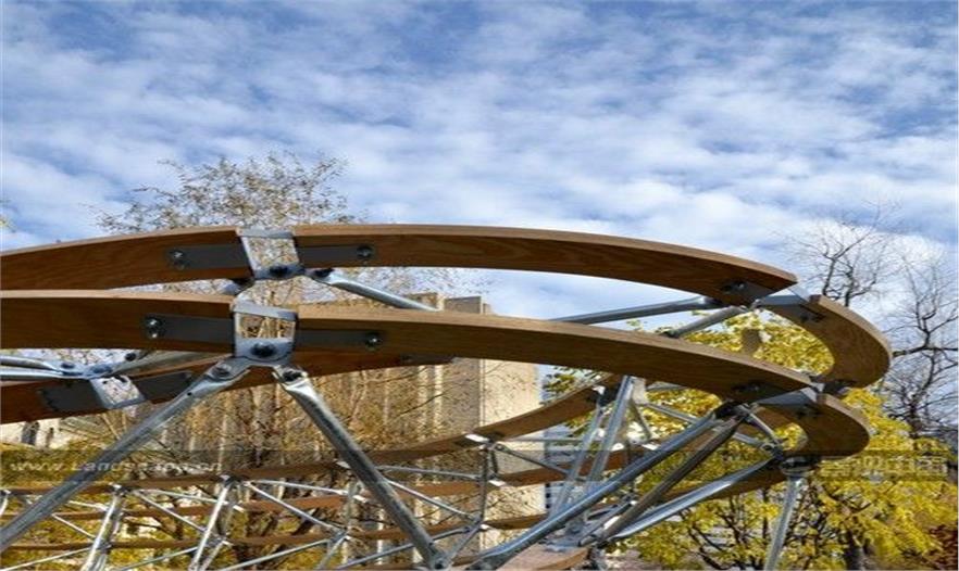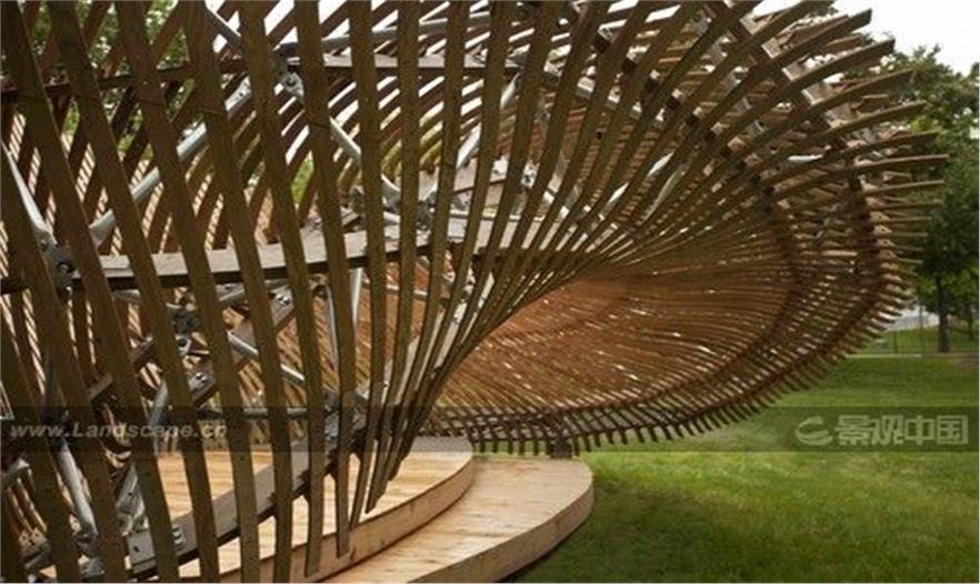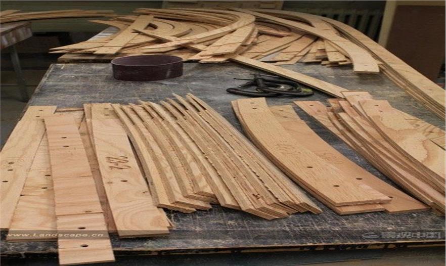 整座建筑由3000多塊膠合板、金屬板和金屬管沿莫比烏斯帶形拼接而成,重量非常輕。項(xiàng)目復(fù)雜的幾何形狀為參數(shù)建模和數(shù)字制造研究創(chuàng)造了一個(gè)獨(dú)特的機(jī)會(huì)。參數(shù)化建模的優(yōu)勢(shì)在于能快速靈活的設(shè)計(jì)和測(cè)量,設(shè)計(jì)師可以開(kāi)發(fā)虛擬原型,同時(shí)測(cè)試更改對(duì)項(xiàng)目產(chǎn)生影響的因素。莫比烏斯帶外形需要處理大量形狀相似又各不相同的構(gòu)件。設(shè)計(jì)團(tuán)隊(duì)專(zhuān)門(mén)編寫(xiě)了計(jì)算機(jī)程序來(lái)處理這一問(wèn)題。