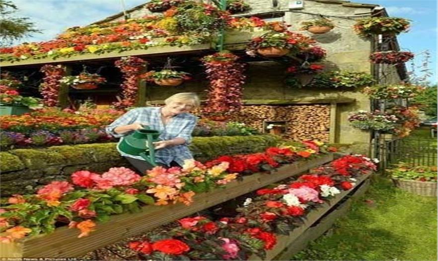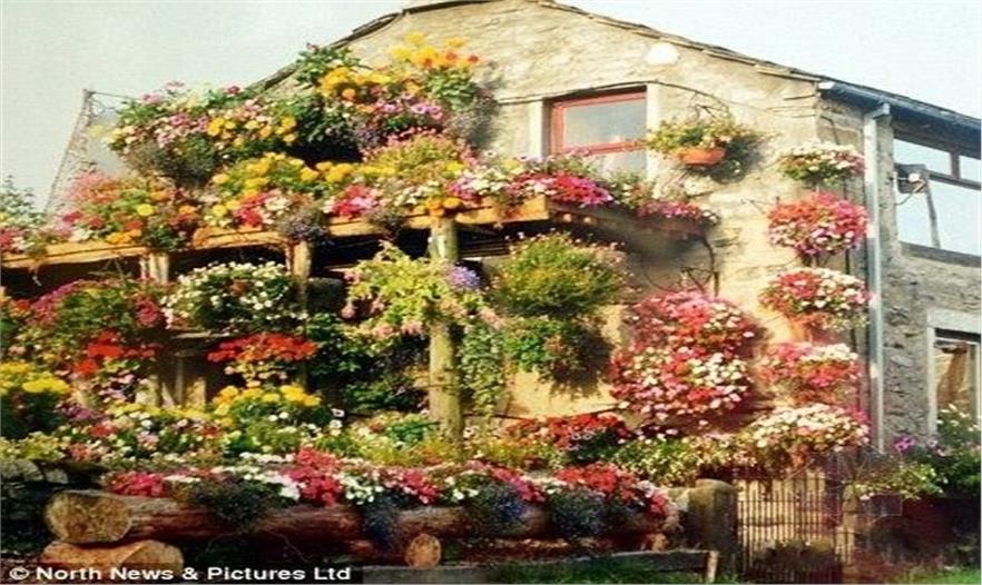 在英國(guó)北約克郡,有一對(duì)夫婦把業(yè)余時(shí)間都用來(lái)養(yǎng)花,26年來(lái),每年都要花數(shù)百英鎊用來(lái)買(mǎi)種子和植物,他們的回報(bào)則是,每到夏天,他們家的房屋都被五顏六色的花簇?fù)碇?、覆蓋著,成為一道美麗的風(fēng)景。過(guò)往的開(kāi)車(chē)人也被美景打動(dòng),夫婦二人每年都會(huì)收到不相識(shí)的人寄來(lái)的卡片。