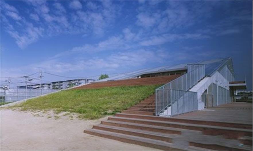 當孩子們在學校彈奏樂器的時候,他們將感受到音樂的節(jié)奏,并在奔跑時聽到聲音的變化,風聲和昆蟲的鳴叫聲也不時地傳來。二層的房屋用木材分隔為12個空間,并配備了各種尺寸的蕾絲窗簾,內部氛圍顯得非常柔和,并展現出風吹過來的動態(tài)。南邊的平臺有一座大型的樓梯和綠色坡道,此外還有操場供孩子們玩耍。