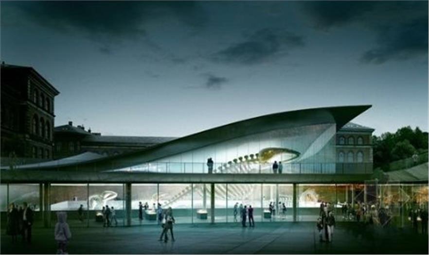 這是由隈研吾建筑都市設(shè)計(jì)事務(wù)所參與設(shè)計(jì)的自然歷史博物館競(jìng)賽項(xiàng)目方案,設(shè)計(jì)師將其重新定義為自然歷史花園,通過(guò)周圍的植物花園創(chuàng)造自然和歷史的融合。參觀的體驗(yàn)在達(dá)到博物館建筑之前已經(jīng)開始,因?yàn)榫薮蟮谋”〉幕炷辽w頂向外延伸,為人們展示出驚人的化石展品,將游客帶入徹底的歷史體驗(yàn)當(dāng)中。綠色的成分貫穿整個(gè)項(xiàng)目,創(chuàng)造出綠色墻壁圍繞的庭院,外部小山下沉到地下,為人們提供巨大的景觀背景。博物館與花園之間的界限已經(jīng)模糊,它們之間相互補(bǔ)充,共同形成平靜的整體。落地的玻璃視覺上聯(lián)系展品和室外空間,同時(shí)又引入自然光于室內(nèi)空間。