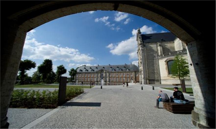 比利時景觀設計事務所OMGEVING最近對比利時scherpenheuvel-zichem的averbode abbey庭院進行了改造。自從1134年建成之后,三條狹窄的步道和一大片草地就漸漸轉化成一個圓環(huán)形的附屬建筑群,在19世紀時成為神父宅邸,門房和修道院長住宅,最終在1976年被改造成一個石塊鋪面的中心廣場。