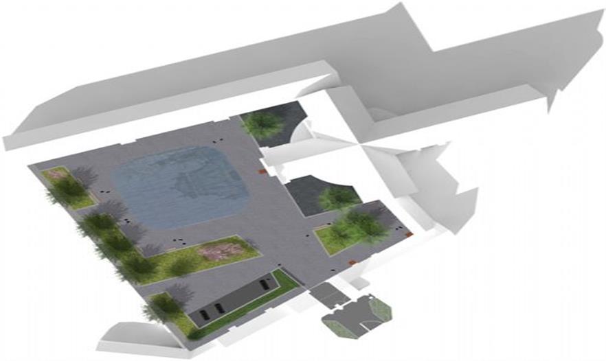 簡潔平靜的空間創(chuàng)造了一個波光漣漪的景色,同時又強調(diào)了景觀本身強烈的存在感。這個5000平方米的改建區(qū)域就像一個大水坑,能在暴雨時有效率的集水,讓周邊區(qū)域不至于因積水而無法使用。庭院中的古樹和停車空間也一并融入到廣場設計中,信息板、箱子和自行車停放架都使用深色的銹鋼材料制作,以突出背后的教堂建筑。