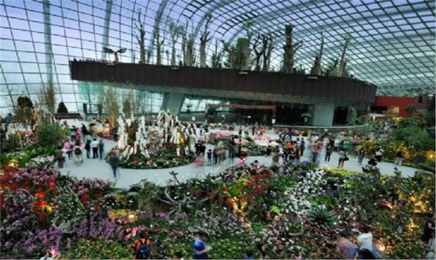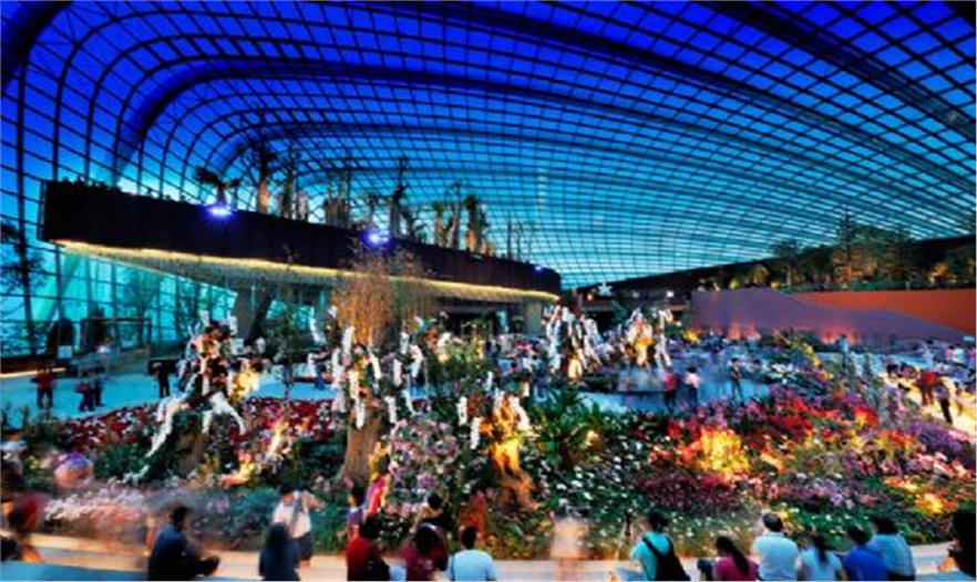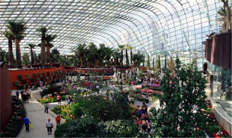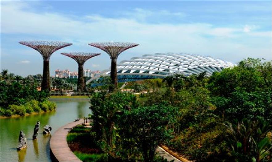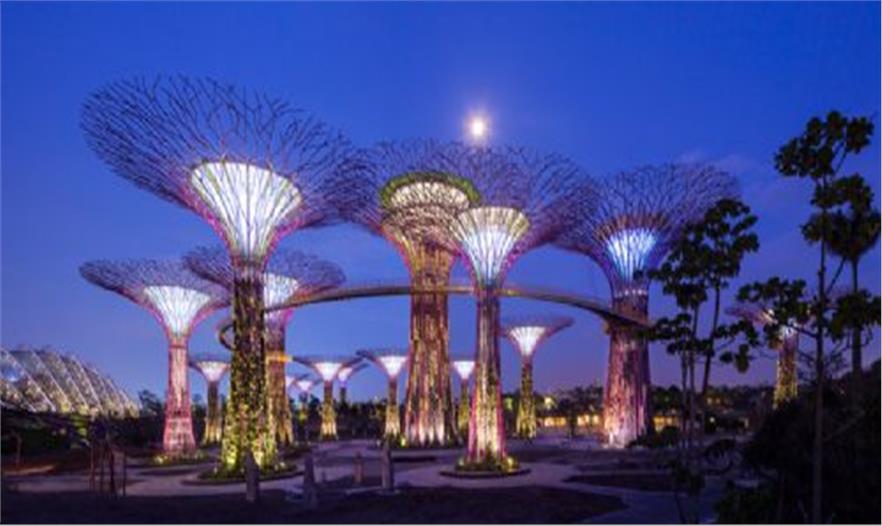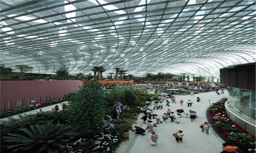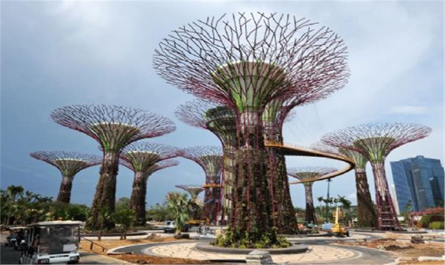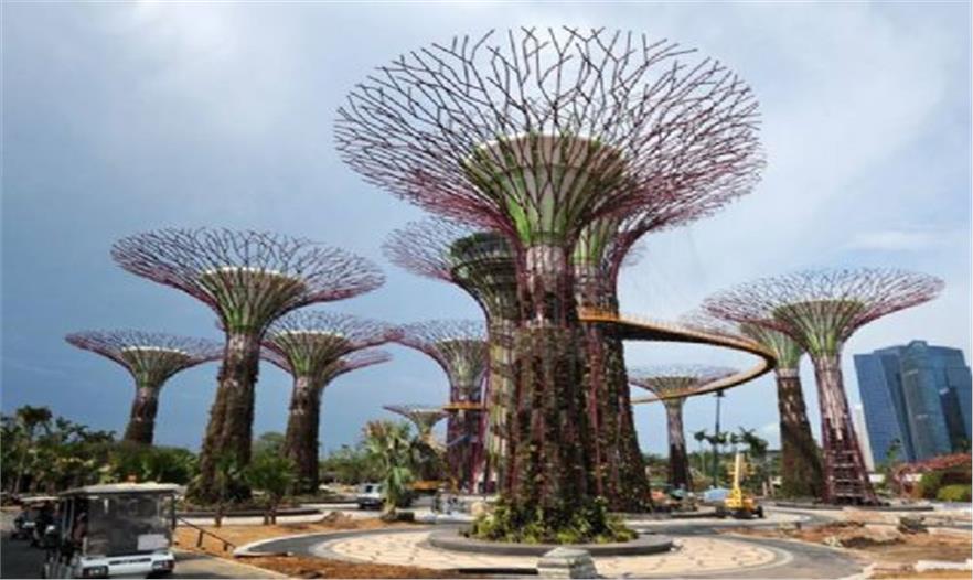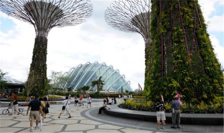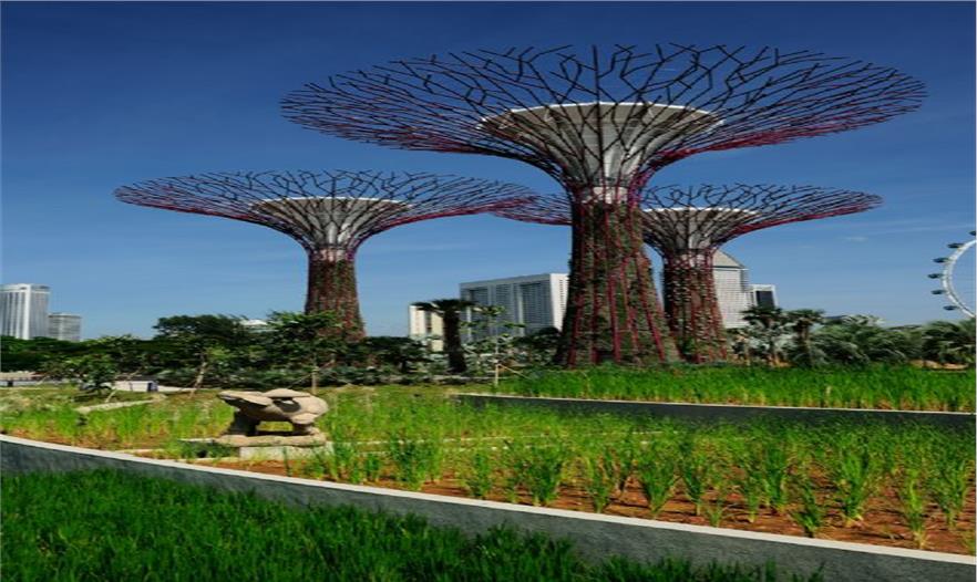 Gardens by the Bay項(xiàng)目是新加坡最大的海濱發(fā)展景觀項(xiàng)目,由國家支持。新加坡國家公園局和來自英國的世界級(jí)景觀事務(wù)所Grant Associates通力合作完成。 花園有兩個(gè)大溫室,一個(gè)是蔭涼干爽的環(huán)境,一個(gè)是潮濕蔭涼的環(huán)境,還有眾多主題園,植物園,里面種植著來自世界各地的成千上萬植物。 這個(gè)公園中最讓人印象深刻的要素是一些高25米---50米的樹狀結(jié)構(gòu),上面成長著垂直花園。攀緣植物,附生植物還有蕨類植物成長在上面。