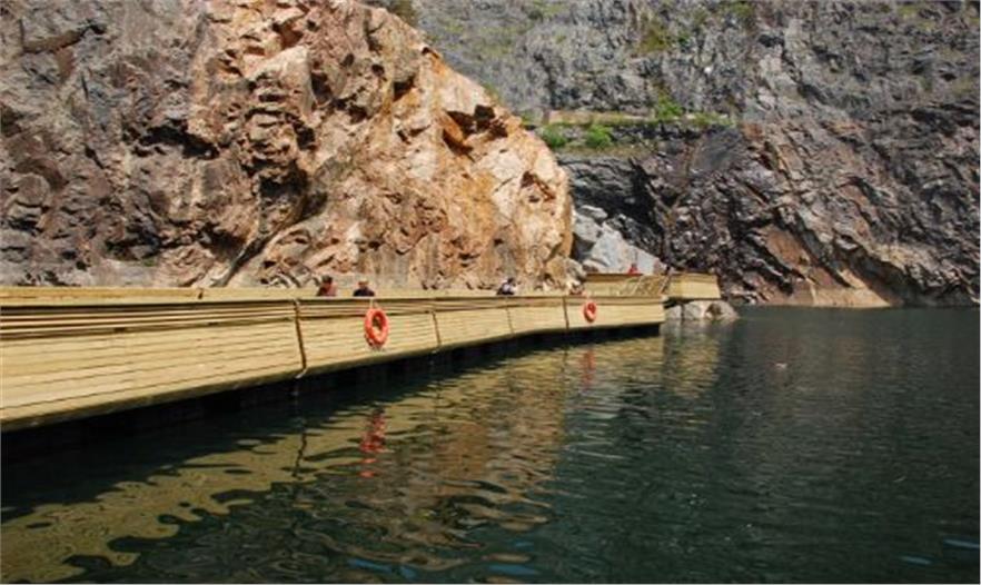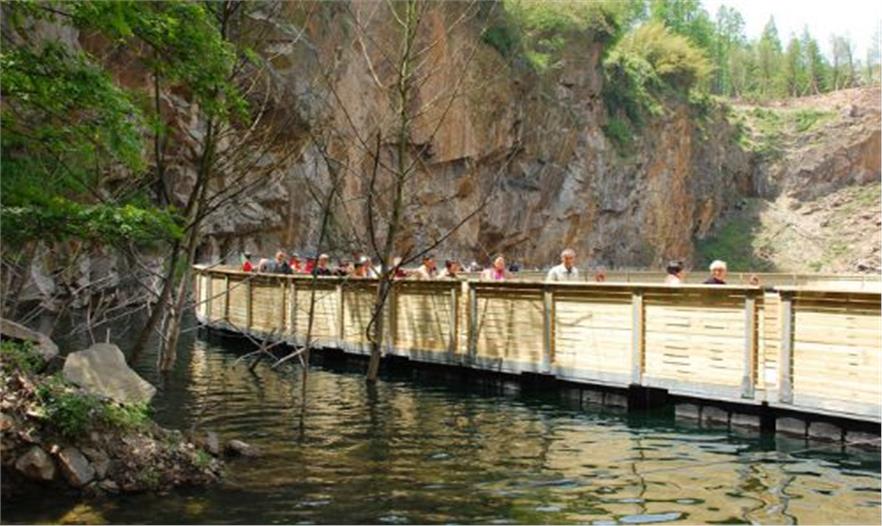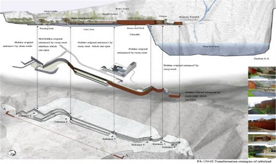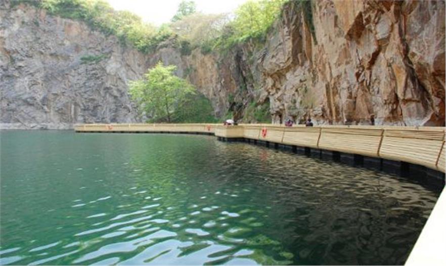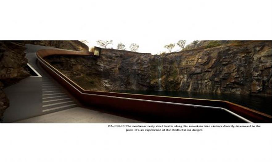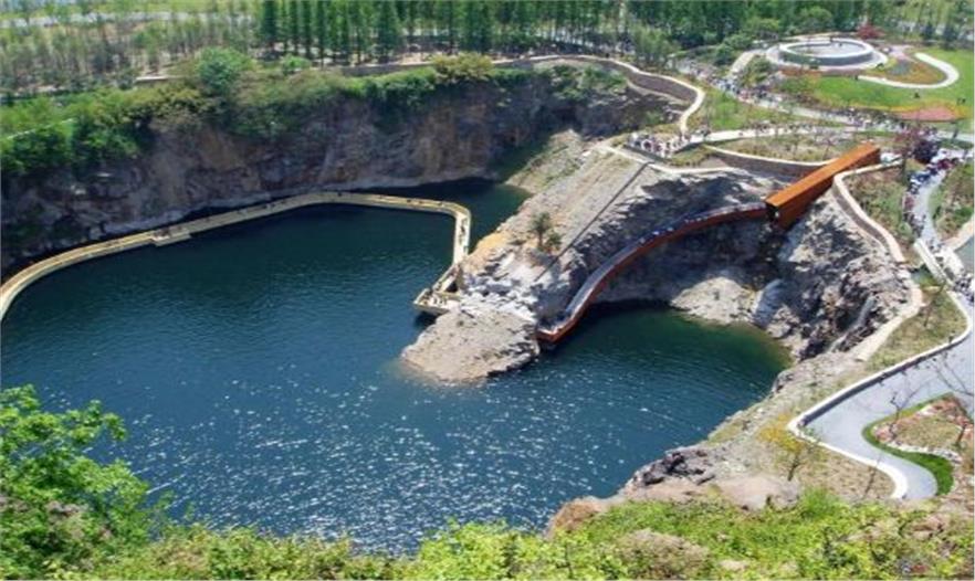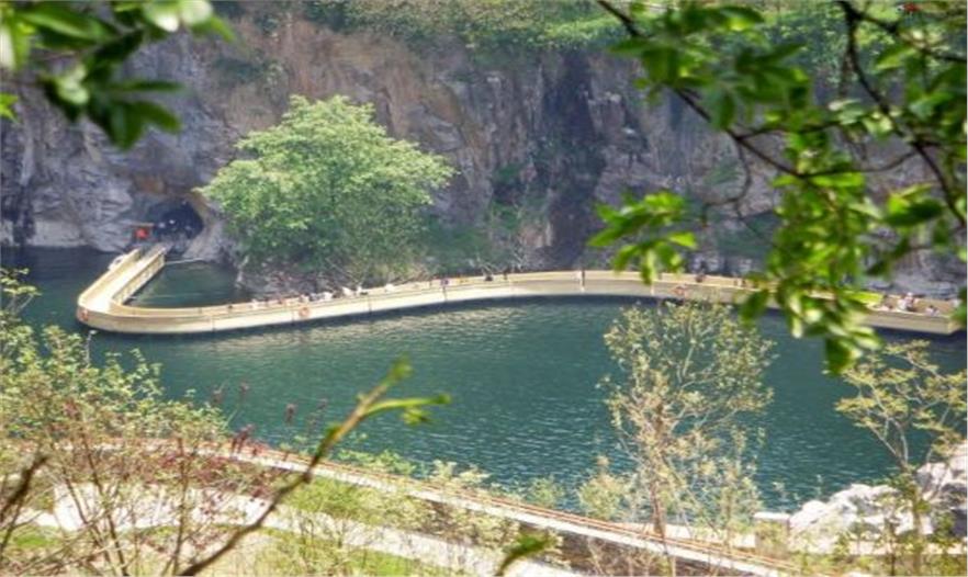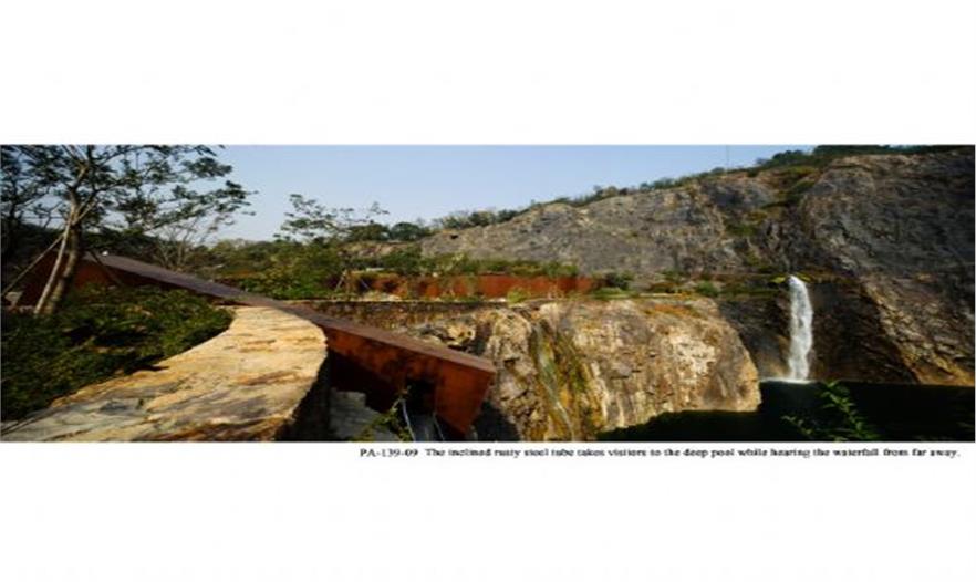 由于關(guān)閉了很常時(shí)間,采石場(chǎng)幾近荒廢,經(jīng)過超過6年的清理、規(guī)劃和植被種植,最終成為了這樣一個(gè)獨(dú)特的多層次公園。經(jīng)過改造,公園在周圍柵欄和墻面上種植了很多樹木、花草,沿著斜坡還設(shè)置了一個(gè)巨大的金屬通道,一直延伸到底部水洞,在游客們欣賞瀑布的同時(shí)帶來些許新鮮和驚喜。