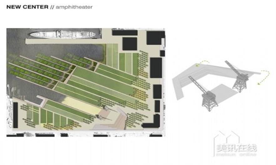 目前來(lái)說(shuō),68號(hào)碼頭呈現(xiàn)出大批物種入侵、植被退化以及不被居民使用的現(xiàn)狀。在中心地帶,還有很多現(xiàn)存的工廠以及一些歷史遺跡。而在當(dāng)?shù)厝丝诿芏让科椒接⒗?000人的情況下,當(dāng)?shù)丶毙柙O(shè)計(jì)出新的社交活動(dòng)場(chǎng)所。