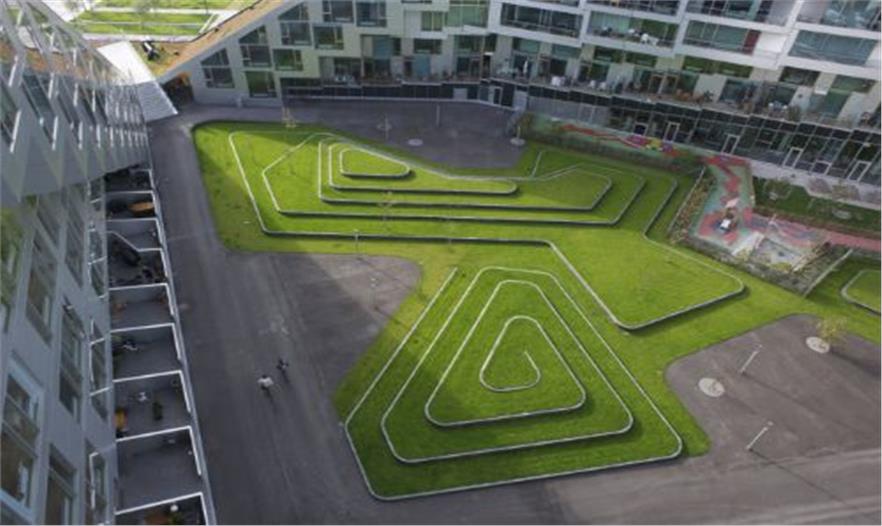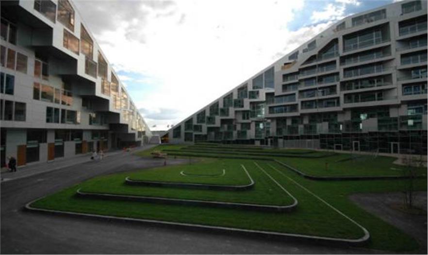 8 tallet始建于2010年,由476套公寓、閣樓和小花園排屋組成,建筑面積60000平方米,并擁有一些特殊功能,包括:旨在讓社區(qū)居民參與的公共空間1500平方米,超過一公里的內(nèi)外道路,讓人們可以走路繞行建筑物或騎自行車從地面到頂部,還設(shè)計(jì)了兩個(gè)傾斜的屋頂綠化,幫助減少城市熱島效應(yīng),提升視覺效果。