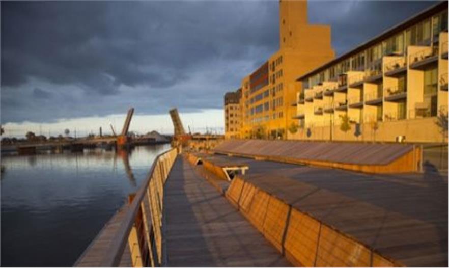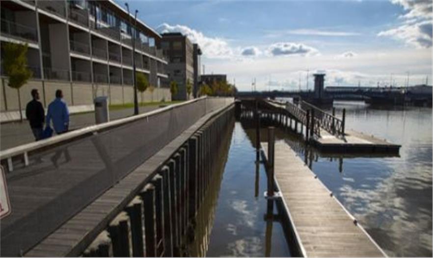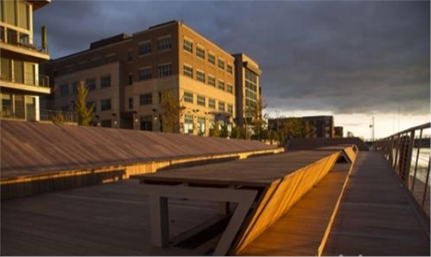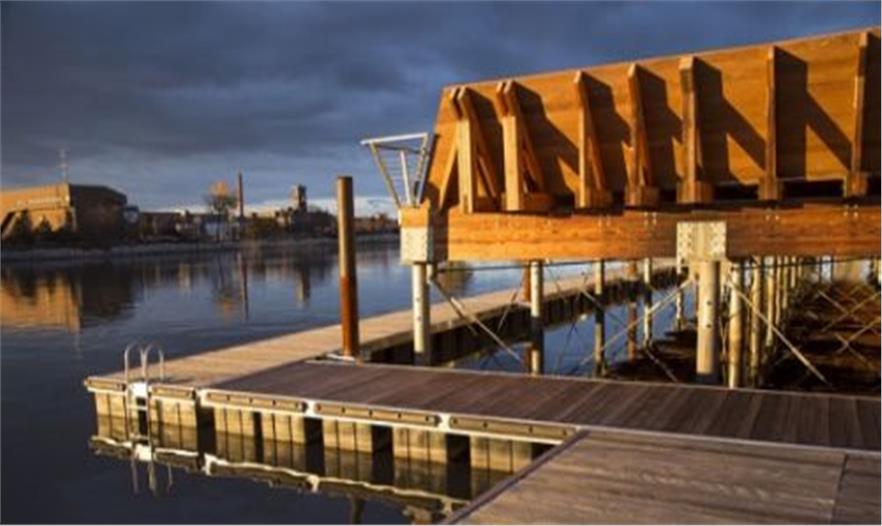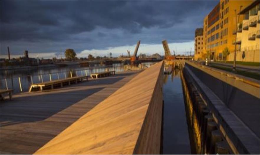 位于美國威斯康星州格林灣的“CityDeck廣場(chǎng)”是該城市中心河岸地區(qū)的一個(gè)新的連接性基礎(chǔ)設(shè)施。它主要是用一系列的可折疊木板在河域和城市居民之間建立的一個(gè)活動(dòng)區(qū)域連接,用作長凳、休閑躺椅以及日光浴場(chǎng)平臺(tái)等,同時(shí)還可以用作集會(huì)、觀景以及飯后散步長廊。