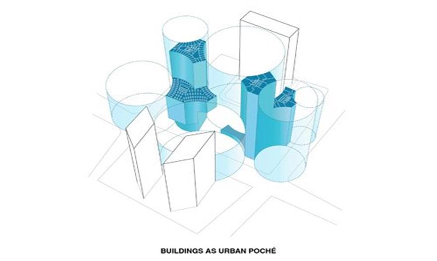 雙塔形態(tài)的設(shè)計是因地制宜,利用一系列循環(huán)的圓形來裁切掉建筑體量,消減建筑體量后形成的空間與外部城市空間相互連接,將雙塔融入城市文脈之中。