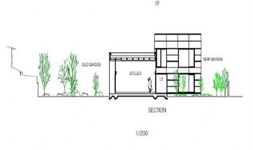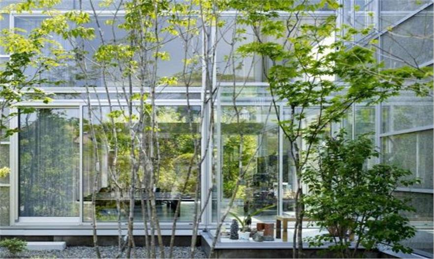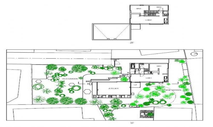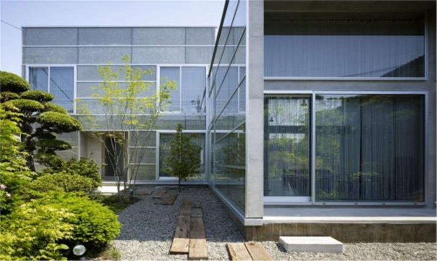 該項(xiàng)目是由Kochi Architect’s Studio設(shè)計(jì)的。該住宅占地450平米,花園在房子的南側(cè)。新的建筑覆蓋率估計(jì)出于成本的20%左右。因此,這個(gè)項(xiàng)目的概念是如何利用80%的外部空間。設(shè)計(jì)師想不希望看到花園但感覺像站在花園里一樣。房子共分為兩個(gè)部分:住所和工作室。為了是房子融入的到花園,外墻是由玻璃設(shè)置的。外墻由木絲水泥板和玻璃裝飾,花園的影子映在墻上。木絲水泥板涂有防水材料,在白天擁有和房間一樣的亮度。