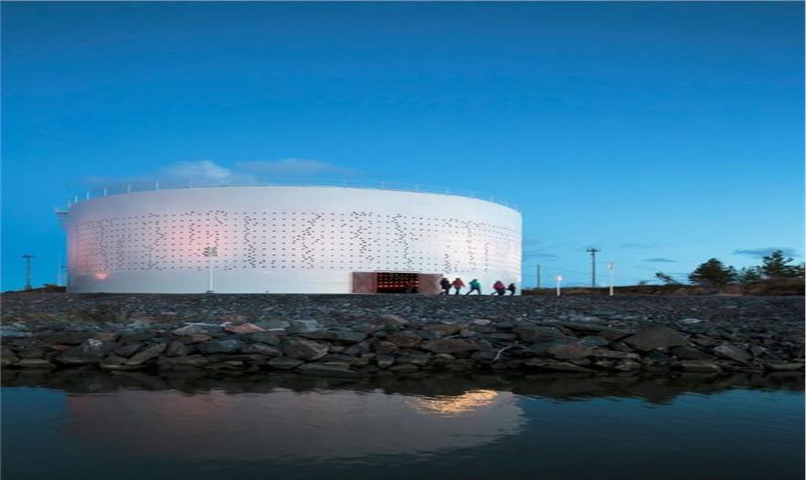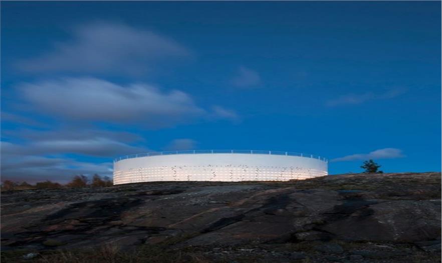 Silo 468座落在海邊,面對赫爾辛基與芬蘭的中心。自然光,風(fēng)及水面上光的運(yùn)動形成了照明概念的原理。墻面一共穿有2012個孔洞,寓意2012年赫爾辛基世界設(shè)計之都。