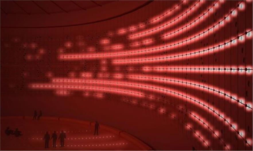 一座廢棄的油倉,在蜂窩智能,互動燈光及瘋狂音響的幫助下成功的幻化成一個迷人的光藝術(shù)作品及公共空間。由總部位于馬德里的光設(shè)計團(tuán)隊(LDC)設(shè)計完成。