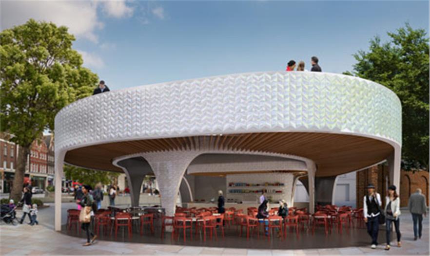 英國(guó)NEX工作室贏得了倫敦切爾西區(qū)Saatchi美術(shù)館外一家咖啡館設(shè)計(jì)競(jìng)賽的優(yōu)勝,方案包括一個(gè)螺旋場(chǎng)館和屋頂花園。