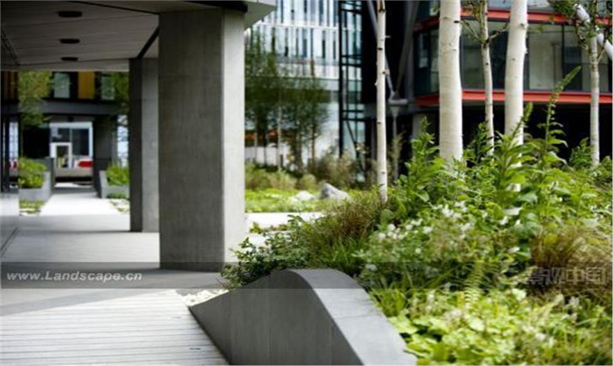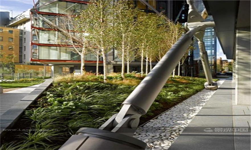 NEO Bankside的周邊存在不同年代建造的形式多樣的建筑,因此Gillespies需要進(jìn)行許多獨(dú)特的規(guī)劃思考。例如,遮擋視野的櫟樹(shù)的大小,以及為其提供足夠的土壤。Gillespies的設(shè)計(jì)師們非常注重對(duì)材料的正確選擇,并且與園藝專家Growth Industry進(jìn)行合作,引入了大量鄉(xiāng)土植物,以減少對(duì)環(huán)境的影響,并能長(zhǎng)期保持穩(wěn)定。在低碳環(huán)保的基礎(chǔ)上,通過(guò)與Hoare Lea工程公司合作,設(shè)計(jì)了雨水回收系統(tǒng),可以用于庭院內(nèi)的植被灌溉,減少了對(duì)于城市用水的需求。NEO Banksides所使用的植物大都是本土植物,BREEAM的生物多樣性原則是選擇適當(dāng)植物物種的主要依據(jù)。