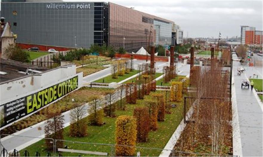 耗資1250萬英鎊的公園成為伯明翰東邊復(fù)興區(qū)的主要部分,也是伯明翰市議會(huì)“大城計(jì)劃”(Big City Plan)市中心再開發(fā)計(jì)劃的一部分。據(jù)悉未來20年內(nèi),再開發(fā)計(jì)劃將耗資100億英鎊。