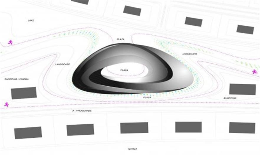 設(shè)計(jì)團(tuán)隊(duì)深入研究了恒河現(xiàn)有模式,通過詳盡模擬恒河密集形式,將其轉(zhuǎn)變成總體方案中的中央綠化區(qū)域。該區(qū)域賦予規(guī)劃鮮明屬性,成為了城市賴以呼吸的肺部。