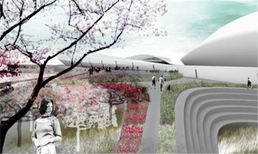 Symbiosis工作室設(shè)計(jì)的跨越恒河總體規(guī)劃占地1156公頃,方案設(shè)想的城市位于恒河岸邊,計(jì)劃成為自給自足的可持續(xù)性城市?;旌嫌猛卷?xiàng)目為總體規(guī)劃提供了最具影響力的城市文脈。