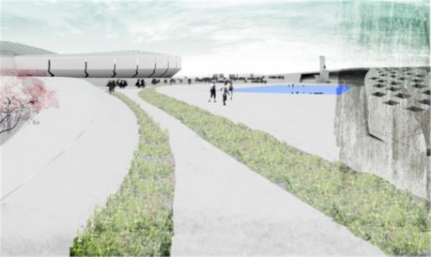 方案的可持續(xù)城市設(shè)計(jì)分為兩個(gè)層次。首先,在設(shè)計(jì)層次里,可持續(xù)性城市所需的多個(gè)元素被移植到方案中。其次,在實(shí)施層次里,對(duì)綠色屋頂、泥土制冷、太陽(yáng)能板、地下水補(bǔ)給、廢棄物管理提出了設(shè)計(jì)方案。