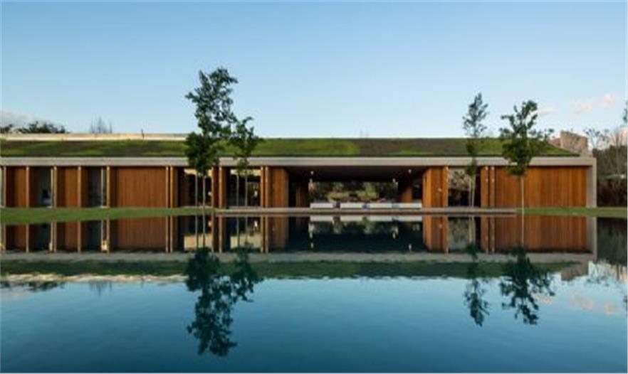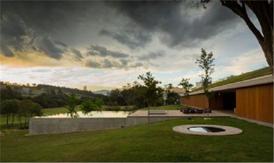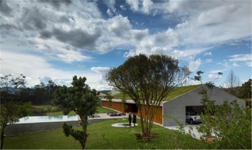 巴西MK27工作室完成了最新項(xiàng)目——位于圣保羅的MM別墅設(shè)計(jì)。東西軸線上是一個(gè)加強(qiáng)混凝土結(jié)構(gòu)建筑,綠色屋頂使房屋融入到翠綠山峰景致中。從車庫到入口再到另一側(cè)的主套房,所有空間呈“一”字型排開。建筑外圍使用一整排長方形窄木條覆蓋,配合大扇玻璃墻壁,使直接采光變得柔和,同時(shí)也使室內(nèi)空間變得開敞通透。
