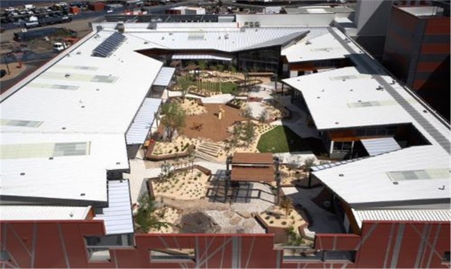 與眾不同的是,這座兒童中心隱身在一座大型超市的屋頂上,中心的戶外花園是當(dāng)前墨爾本市最大的屋頂花園之一。政府希望將它打造成為兒童托管中心建設(shè)的典范,親近大自然的戶外活動(dòng)才是孩子早期教育和健康成長(zhǎng)的關(guān)鍵。