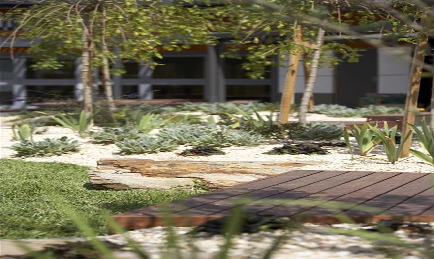花園內(nèi)設(shè)有不同的主題,充分展現(xiàn)了大自然的多樣性。校樹、山龍眼和木麻黃樹林呈現(xiàn)了澳大利亞豐富的景觀類型,孩子們可以在此愉快地參與園藝或捉迷藏。兩棵引人注目的半大胡椒樹和木質(zhì)遮陽棚分別為活動(dòng)區(qū)和沙坑等安靜區(qū)帶來蔭涼。廚房花園中栽種著桑樹和橄欖樹,抬高的種植器中有水果,蔬菜,藥革以及攀爬植物用的藤架,可以讓孩子們參與到食物生產(chǎn)與制作的過程中。各種各樣可以攀爬的表面為孩子們提供了豐富的觸覺感受,同時(shí)也對(duì)蹣珊學(xué)步者增加了挑戰(zhàn),竹子以及大葉的亞熱帶植物營(yíng)造出壹個(gè)奇特與歡樂的異域世界,大片的屋頂區(qū)可以收集足夠的雨水進(jìn)行再利用灌溉,豐富多彩的豎直貯水箱對(duì)著空心墻里的花園敞開。孩子們可以參與儲(chǔ)水級(jí)別的監(jiān)管,更好地理解水資源的寶貴。