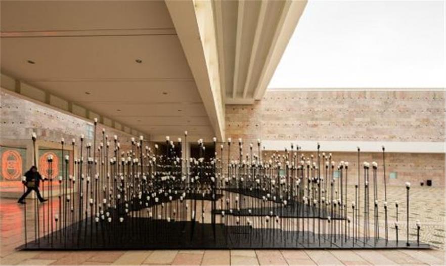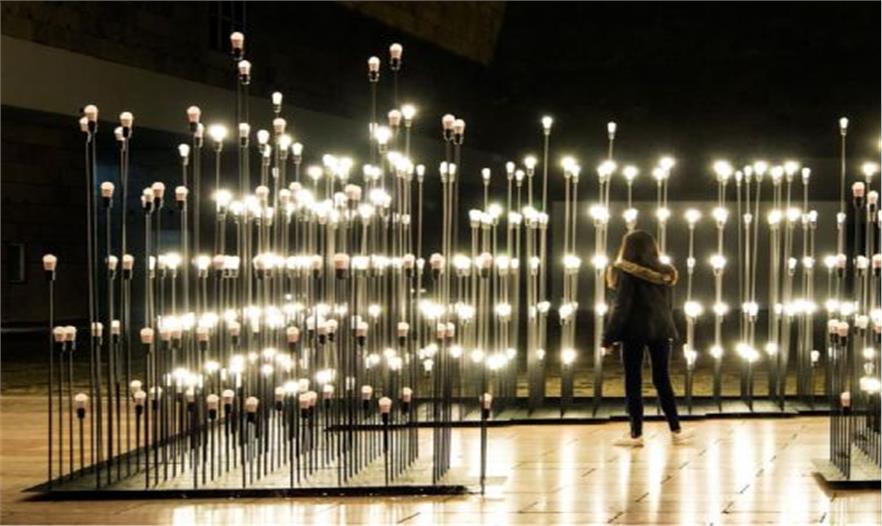 設(shè)計師巧妙地將立地?zé)艚M成的一個路徑,每只燈泡以合適的高度存在,讓進入的觀眾體驗神奇的觀感。
