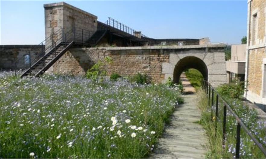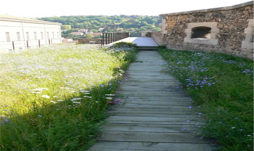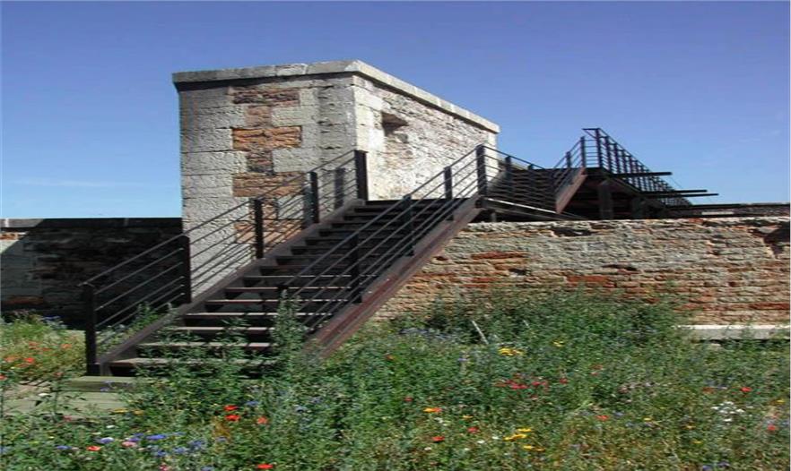 兩座早期的建筑物被納入這座堡壘:12世紀十字軍時期的醫(yī)院騎士團養(yǎng)老院,15世紀普羅旺斯國王Rene一世塔[2]。