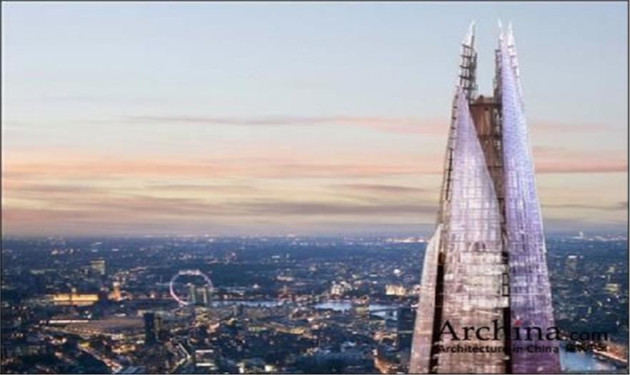 這座位于倫敦橋地鐵站附近的錐形建筑高309.6米,是西歐最高的建筑,外表完全由玻璃包覆,又被稱為“玻璃碎片”。它是在2000年由設(shè)計了巴黎蓬皮杜藝術(shù)中心的意大利建筑師倫佐?皮亞諾負責(zé)設(shè)計。大廈的開發(fā)計劃曾一度受到地方政府以及文化、建筑遺產(chǎn)保護機構(gòu)的反對,時任副首相普雷斯科特于是下令對開發(fā)計劃進行調(diào)查。半年后,調(diào)查組給出的結(jié)果認為大廈設(shè)計質(zhì)量一流,開發(fā)計劃得以通過。