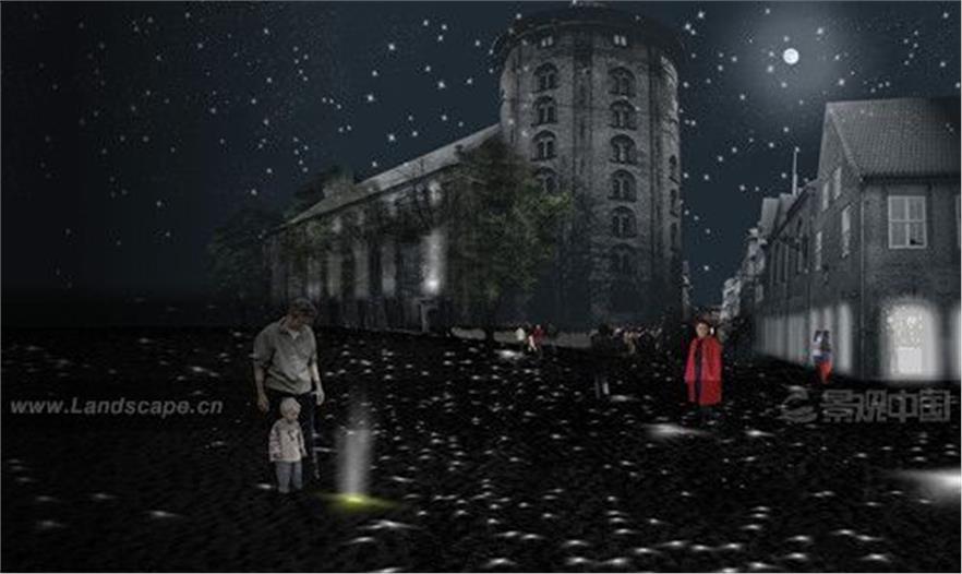 整個(gè)夜間,這座中世紀(jì)的古老城市有著獨(dú)特的憂郁而神秘氛圍,這一點(diǎn)在冬季尤為突出。這種氣氛通過(guò)在廣場(chǎng)中使用暖色調(diào)間接照明和少量的強(qiáng)調(diào)性裝飾而得到了進(jìn)一步加強(qiáng)。這意味著我們?nèi)匀豢梢钥吹叫切牵拖窨死锼沟侔菜氖涝?7世紀(jì)在Rundetårn圓塔的天文臺(tái)中所做的那樣。