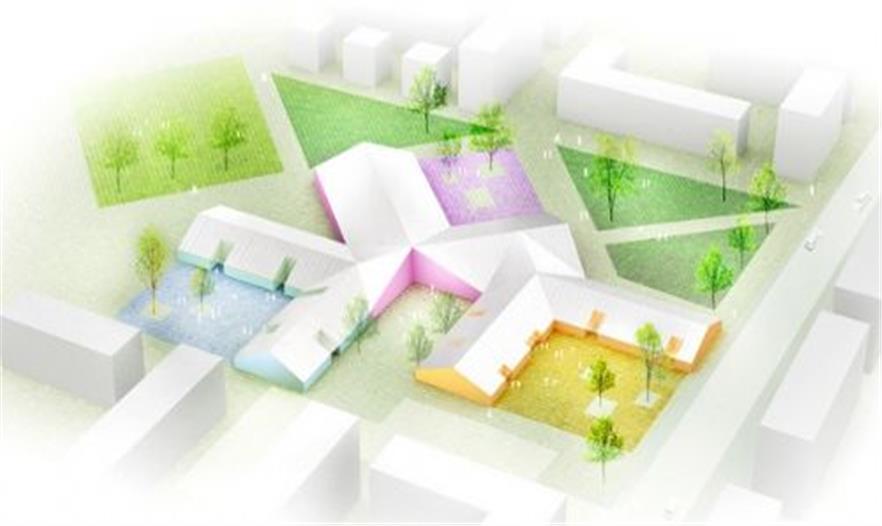 附樓里為托兒所和學(xué)齡兒童設(shè)置了教室和學(xué)習(xí)空間。每一個教室都有單獨的入口,與休息廳、教室和游戲室連接在一起。遠(yuǎn)離附樓的是核心區(qū)域,用于集體活動、體育比賽、藝術(shù)學(xué)習(xí)等。公共空間用富有活力的色彩來加以裝飾。