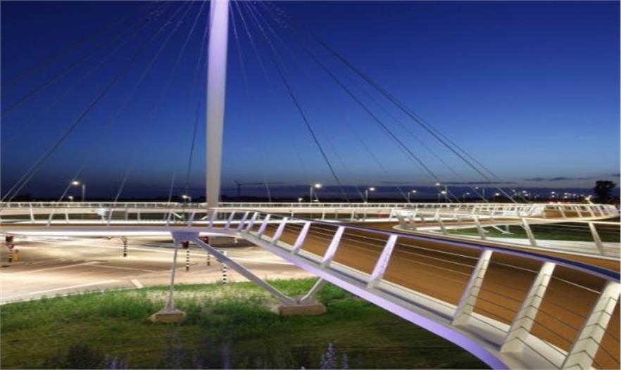 由荷蘭IPV/Delft建筑事務(wù)所設(shè)計(jì)的鋼鐵天橋外形如同飛盤,架設(shè)在十字路口之上,標(biāo)識了通向埃因霍溫和費(fèi)爾德霍芬的入口點(diǎn)。