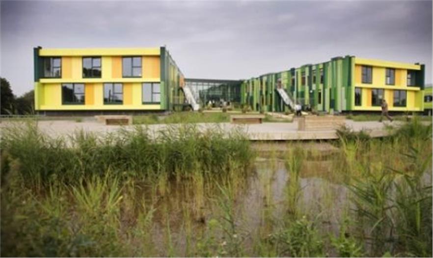 園區(qū)周圍及場地內(nèi)部分地區(qū)種植了樹木,體現(xiàn)了當(dāng)?shù)貥鍢淞趾拖饦淞值纳鷳B(tài)環(huán)境,增加了生物多樣性。