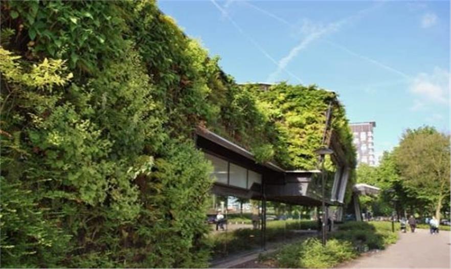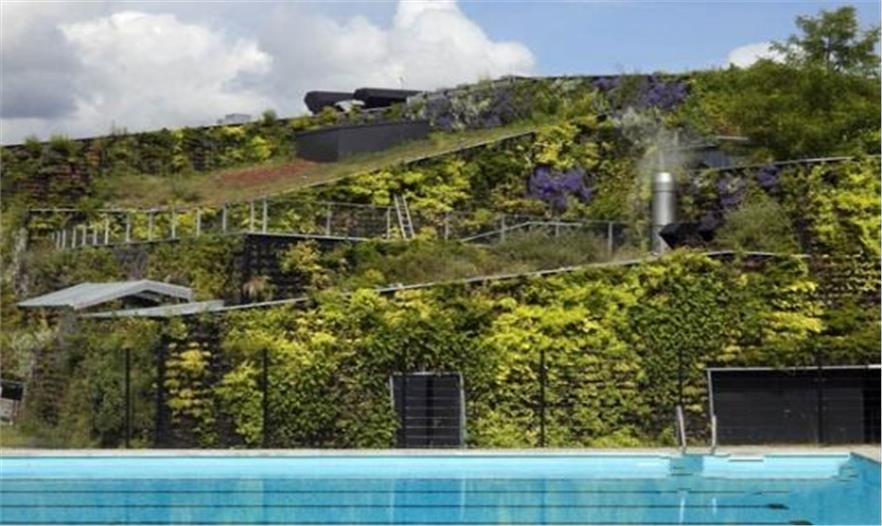荷蘭阿姆斯特丹的‘De Baarsjes’社區(qū)是名符其實(shí)的社會大熔爐,這里聚集了來自世界129個不同國家和地區(qū)的人民。當(dāng)局為了提高這里生活質(zhì)量便在這里建立了一個集游泳池,水療,健身健美,桑拿,聚會中心,咖啡廳,快餐店一體的綜合建筑,由于這個建筑位于公園中,因此建筑師讓建筑披上了厚厚的綠色植被外衣。
