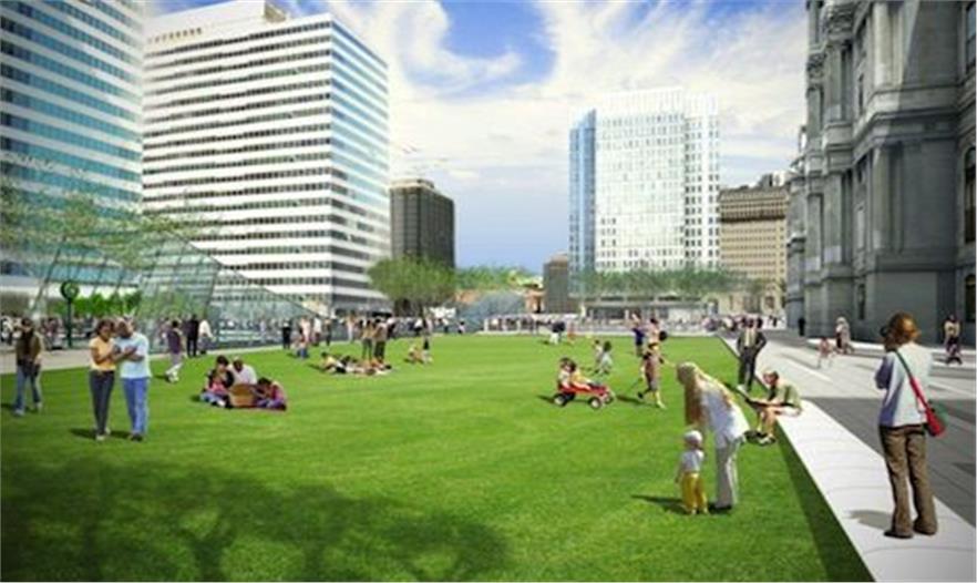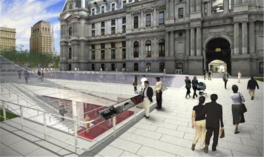 Dilworth下沉式廣場位于美國費城市政廳前,與其顯著的地理位置相比,其功能似乎不夠突出。OLIN事務所計劃對此進行改造,使廣場地面與街道齊平,使之融入市政廳周邊區(qū)域,同時添加新的市民和游客服務設施。