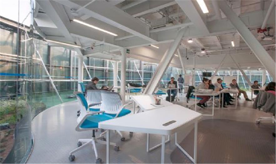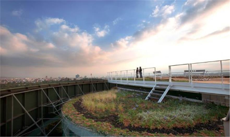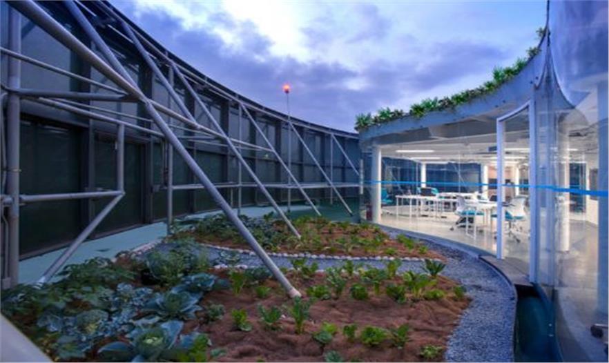 作為可口可樂公司與墨西哥城rojkind arquitectos事務(wù)所以及AGENT正在進(jìn)行的合作項目的壹部分,設(shè)計師將一個廢棄的屋頂和直升機停機坪改造成“transformadora ciel”的聯(lián)合工作空間。這個空間是利用回收的金屬結(jié)構(gòu)搭建的,大部分設(shè)施都暴露在外,盡量減少不必要的裝修花費。原有的停機坪結(jié)構(gòu)被重新利用在辦公室建造上,設(shè)計師還建造了一個全新的綠色屋頂和雨水收集系統(tǒng),讓這個小環(huán)境可以自給自足的運轉(zhuǎn)。曲線形的室內(nèi)空間布置在屋頂?shù)倪吘壧帲梢越邮盏匠渥愕淖匀还饩€,讓整個工作區(qū)域變得明亮起來。當(dāng)?shù)厣a(chǎn)的模數(shù)化家具布置在開放的流動空間中,座椅可以自由布置,創(chuàng)造了靈活動態(tài)的工作環(huán)境。人們可以到屋頂花園觀賞絕美的城市景色,緩解長時間辦公的壓力和疲勞。太陽能光電板幾乎可以完全支持低能耗的LED燈光照明設(shè)施,水性的墻面涂料也最大限度的減輕了對室內(nèi)空氣環(huán)境的影響。