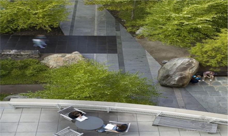 鋪路圖案和材料表現(xiàn)出地層和本地石頭類型。并為學(xué)習(xí)自然巖層提供了機會。精心挑選的植物布局代表新罕布爾什州的植物群,兩口井可以檢測水質(zhì)和地下水的級別。雖然與學(xué)術(shù)課程密切相關(guān),但庭院仍提供了一個休閑放松的環(huán)境。