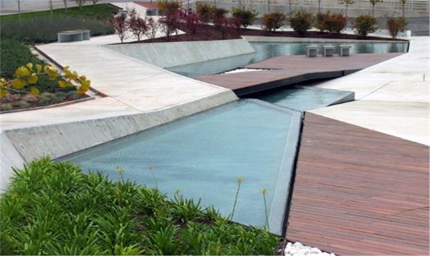 這些由西班牙建筑事務(wù)所Dom arquitectura設(shè)計的無序的幾何造型構(gòu)成了動人而平衡的風(fēng)景,將陡峭的河岸、水渠和裂隙緊密的集合在了一起。