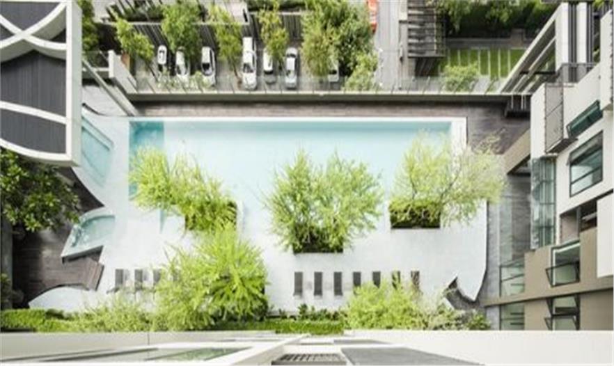 這個(gè)夢(mèng)幻般的“Green Camouflage花園”景觀項(xiàng)目位于泰國(guó)曼谷最繁華福地的Blocs 77公寓中。5244平方米的用地中容納了467戶(hù)住宅單元??蛻?hù)希望在這個(gè)建筑項(xiàng)目中的1樓和5樓(帶泳池)修建休閑空間。