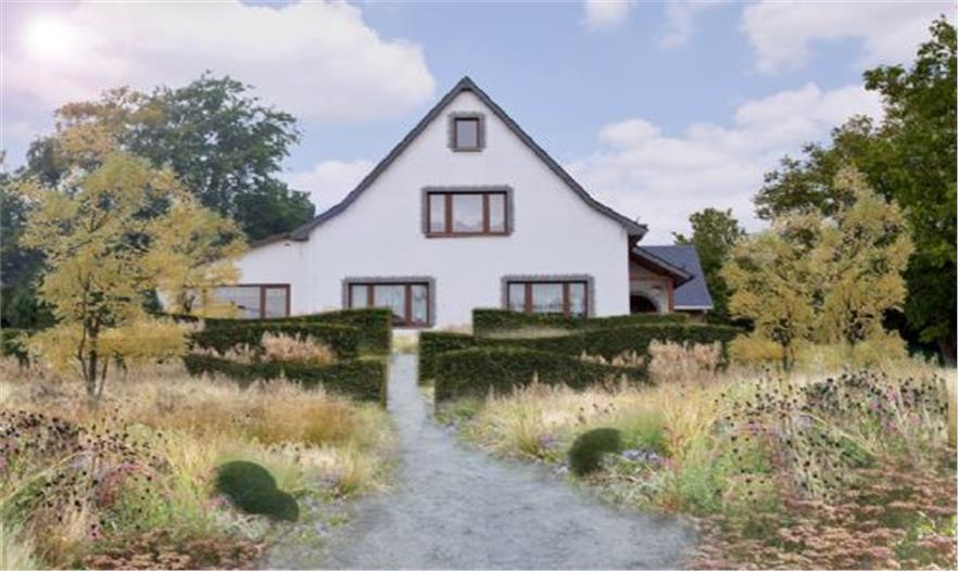 Dennis Pytlik:對比花園,“這種新的前院是通過對比被塑造,這種對比尤其是在秋天能看見。這是普遍的和生長形式的比賽。外低矮灌木偶遇生長中的野生草本植物。在背景下的這些深色的拂動的被修建成一定形式的籬笆墻很清晰的被鮮亮的青草和灌木植突出了出來,穿過這些植被至家的小路蜿蜒而行。”