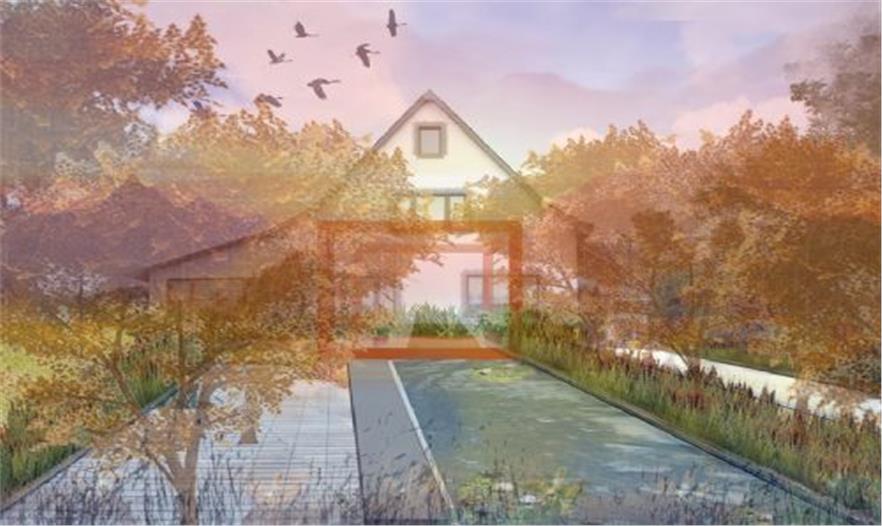 Dayana Valentien: 對角花園?!胺孔雍突▓@變成了羅曼蒂克般的整體,一個被藍色天空所襯托出來的綠色的三角形,帶著常青綠藤縈繞在房屋周圍。這座小型三角花園“Hortus Conclusus”就坐落在在帶有鄉(xiāng)土氣息果樹草地之間。春季的時候果樹花霧會占據(jù)這座花園,在夏季花卉和灌木繁茂之時,和在冬天抑或在落雪時,這常綠的籬笆墻結(jié)構都展現(xiàn)出一幅版畫一般的美景?!?nbsp;