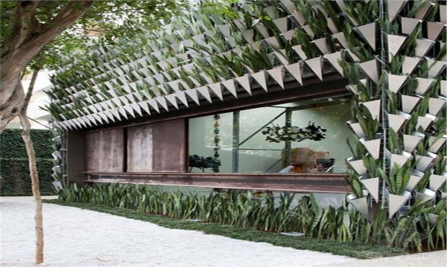 在Sao Paulo的店面設(shè)計中,F(xiàn)irma Casa兄弟們設(shè)計了一個綠色的爬滿了虎尾蘭(俗稱蛇植物)墻,向植物所擁有的超自然的防護(hù)和治療力量致敬。