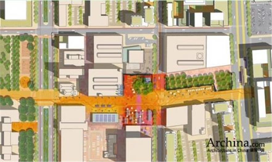 規(guī)劃的一個(gè)重要特點(diǎn)是在該區(qū)域的核心位置建造一座廣場,推動(dòng)創(chuàng)意思想的交流。廣場上設(shè)置了協(xié)作區(qū)、實(shí)驗(yàn)室、投影屏、攀爬墻和咖啡館等,樹叢中設(shè)有長凳,讓在該地區(qū)工作的人員能夠坐下來交談。