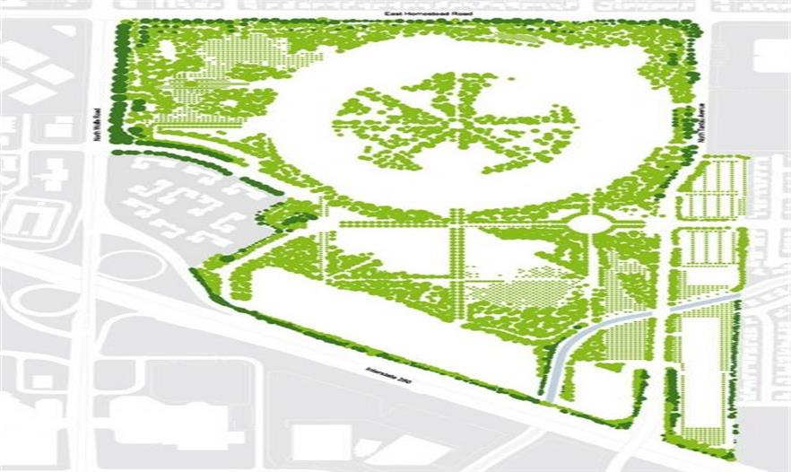 該園區(qū)的功能如下:辦公,研究,面積大約280萬(wàn)平方英尺,可容納13000雇員,1000座位的會(huì)議廳,中心綠地。相應(yīng)的停車位。