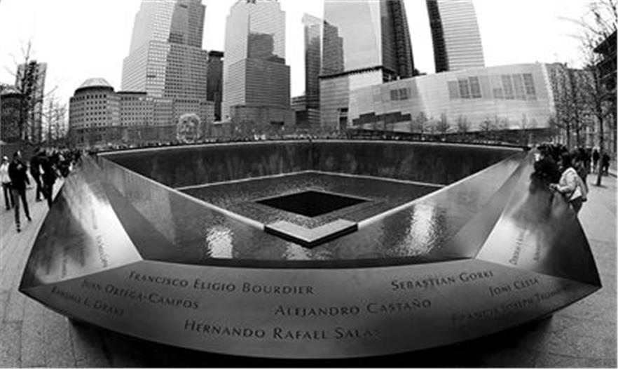世貿(mào)中心雙子樓倒塌后留下的大坑建成了兩個方形水池