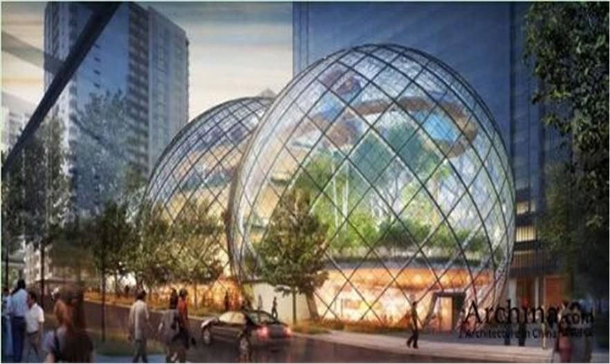 這樣的話亞馬遜公司的員工可以單獨或者以小團體的方式在低至5層的小樓里工作,周圍綠樹成蔭,環(huán)境優(yōu)美。穹頂種植了各種花草,能夠形成微氣候。