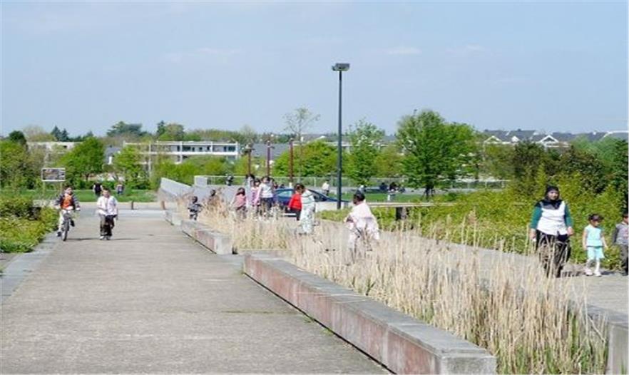 水,作為一種資源,形成了公園的形狀,并表現(xiàn)出其所有尺度的存在。湖泊種滿了橡木,蘆葦床為其提供了徑流水植物凈化、縮小結(jié)構(gòu)的平臺(tái)。空間、水的集成和排放都有助于這個(gè)地形和生態(tài)的形成。St Jacques Ecological公園表現(xiàn)出來(lái)的不是一個(gè)典型、固定的公園形象,但其生態(tài)系統(tǒng)的保護(hù)和發(fā)展的目標(biāo)是一個(gè)永久的實(shí)驗(yàn)室。這個(gè)維度建立在地理和歷史之上,隨著土地的使用和時(shí)間的推移,它們將給這個(gè)現(xiàn)代公園賦予它自身的特性。