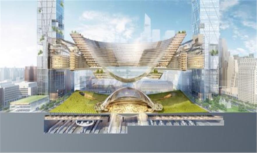 由世界著名建筑事務(wù)所SOM設(shè)計(jì)的世貿(mào)中心一號(hào)大樓將有機(jī)會(huì)重塑紐約的城市天際線(xiàn);同時(shí),這個(gè)項(xiàng)目還考慮到了城市的宜居性,這是一座具有前瞻性的基礎(chǔ)設(shè)施,可以為紐約市民提供優(yōu)先舒適的公共娛樂(lè)空間,將城市活力與未來(lái)發(fā)展結(jié)合。為了回應(yīng)紐約市政藝術(shù)協(xié)會(huì)對(duì)設(shè)計(jì)的要求,建筑師重新設(shè)計(jì)了北美最繁忙的車(chē)站,方案將麥迪遜廣場(chǎng)花園轉(zhuǎn)移到旁邊的基地,將擁擠狹窄的penn station擴(kuò)大,設(shè)計(jì)成一個(gè)高效、綠色的交通樞紐站。這個(gè)設(shè)計(jì)試圖解決高密度問(wèn)題,并在合并于擴(kuò)大之間尋求平衡。